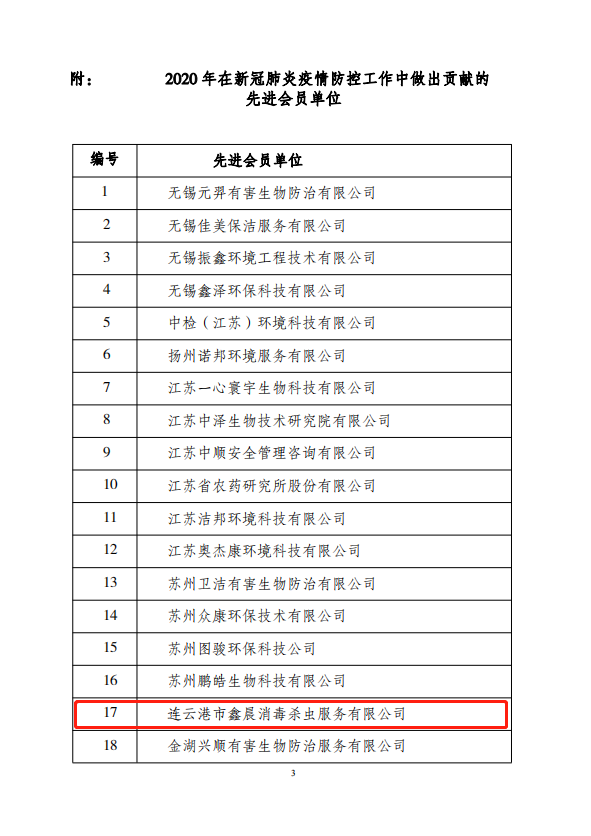 为弘扬有害生物防制行业的抗疫精神,协会决定对 2020 年积极参与新冠肺炎疫情防控消毒工作、在疫情期间积极捐款捐物、为疫情防控做出贡献的先进会员单位给予通报表扬。