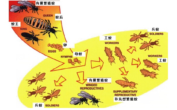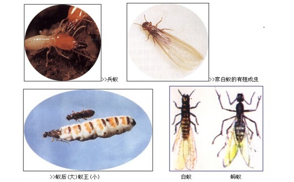 常见白蚁的分类表:等翅目 白蚁科大白蚁属黄翅大白蚁 土白蚁属黑翅土白蚁木白蚁科堆砂白蚁属截头堆砂白蚁鼻白蚁科散白蚁属黑胸散白蚁 乳白蚁属台湾乳白蚁 和胸部的特 在确定白蚁所属的科后再根据白蚁危害种类鉴别一览表中兵蚁头部征及其栖息和筑巢习性进行鉴别。